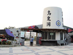 烏鬼洞位於琉球嶼西南隅,與島上的美人洞具是享譽盛名的觀光景點。因珊瑚礁岩遍延於此一海岩岸上,因而構築成一道道蜿蜒的屏障,猶如守護著琉球島的勇士。入口處的礁岩上有顆百年老榕樹,終年綠蔭滿佈,憑空懸岩,形成奇特景觀,讓人嘆為觀止。而謝東閔先生所題的: